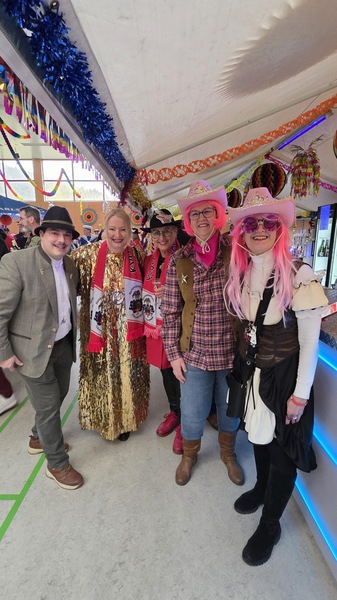 Traditionell startete am Fasenachtssamstag der Sturm auf die Ortsverwaltungsstelle in Oberwürzbach. Angeführt von der Orchestergemeinschaft Musik verbindet und mit fasenachtlichen Klängen marschierte der Karnevalsverein „Die Maulesele“ vor der Ortsverwaltungsstelle auf. Vorstand, Elferrat und Garden stellen dabei ein starkes Aufgebot. Aber auch Ortsvorsteherin Dunja Sauer und ihre Stellvertreterin Sabine Degel hatten mit einem reichhaltigen Getränkeangebot viele Interessierte in die Ortsverwaltungsstelle gelockt, um die Angreifenden abzuwehren. Ministerin Christine Streichert-Clivot, Pfarrer Alexander Klein und die Werzbachhühner unterstützten neben vielen weiteren Oberwürzbacher Närrinnen und Narren die Ortsvorsteherinnen. Nach einem munteren Wortgefecht zwischen der stellvertretenden Vorsitzenden des KVO, Annette Matheis, sowie Ortsvorsteherin Dunja Sauer, die so sie ihre Stellvertreterin als Sheriff verkleidet war, übernahmen schließlich die Närrinnen und Narren des KVO bis Aschermittwoch die Macht in Oberwürzbach. Ortsrat, Ministerin und Pfarrer wurden schließlich zum Feiern abgeführt in die Oberwürzbachhalle. Dort wurde bei fasenachtlichen Klängen gemeinsam gefeiert. „Ein herzliches Dankeschön an den Karnevalsverein, der Oberwürzbach mit seinen zahlreichen Fasenachtsveranstaltungen und großem ehrenamtlichen Engagement zu einem Leuchtturm der Fasenacht macht. Herzlichen Dank auch an die Orchestergemeinschaft Musik verbindet, die Freiwillige Feuerwehr Oberwürzbach, die Knipser sowie alle helfenden Hände, die den Rathaussturm und auch die weiteren Veranstaltungen mit unterstützen. Das ist ein hervorragendes Zusammenspiel innerhalb unserer Dorfgemeinschaft. “ zeigt sich Dunja Sauer dankbar, „