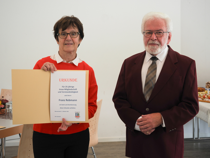 Auf den Tag genau konnte der Oberwürzbacher Heimatverein am 05.10.2025 sein 25- jähriges Jubiläum feiern. In Ihrer Bergrüßungsrede ließ die Vorsitzende Lydia Schaar die Entstehungsgeschichte des Heimatvereins revue passieren. Angefangen bei den Gründungsmitgliedern, allen voran der langjährige Vorsitzende und 2023 verstorbene Alfons Wirtz, die Eröffnung des Heimatmuseums fünf Jahre später, die Vielzahl der Projekte, wie Banngrenze, Hinweistafeln zur Ortsgeschichte, Brunnen und Bannwanderungen fanden Erwähnung.