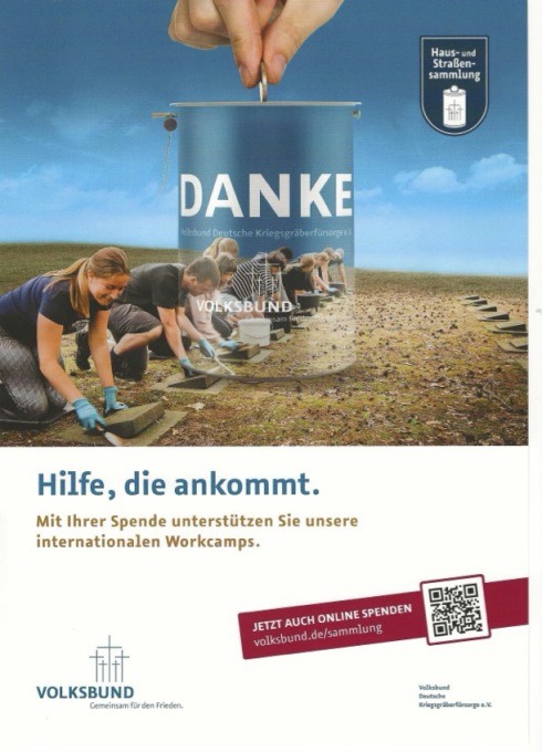 Der Volksbund Deutsche Kriegsgräberfürsorge e. V. bittet um Spenden für seine wichtige Erinnerungsarbeit.