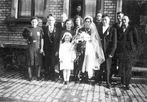 Selma, die Tochter von Anna und Nikolaus Schmitt heiratete Anfang der 1940er Jahre den St. Ingberter Fuhrmann Peter Hager. Das Foto zeigt die Hochzeitsgesellschaft vor dem Haus mit der Poststelle in der Oberwürzbacher Friedhofstraße. Ganz rechts neben dem Bräutigam steht Georg-Franz Hager, genannt „de Järr-Franz“. (fotos: privat)